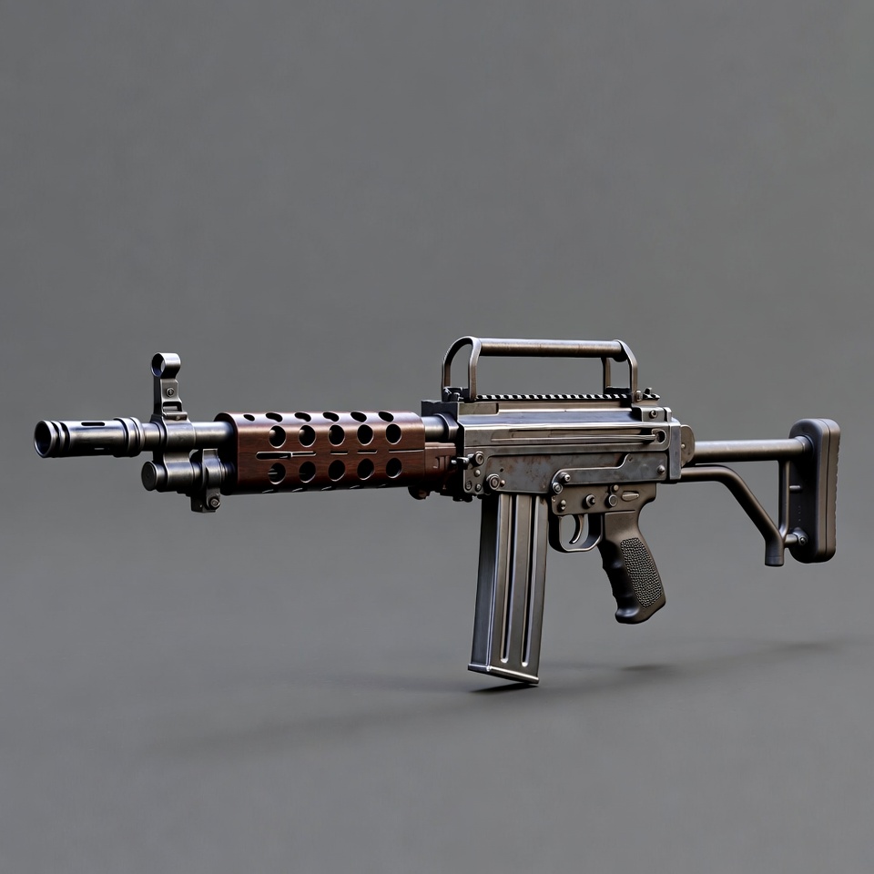 3D render, assault rifle, battle rifle, bullpup, carrying handle, firearm, flash hider, gray background, gun, military weapon, no people, pistol grip, rifle stock, weapon, wooden handguard, FN FAL