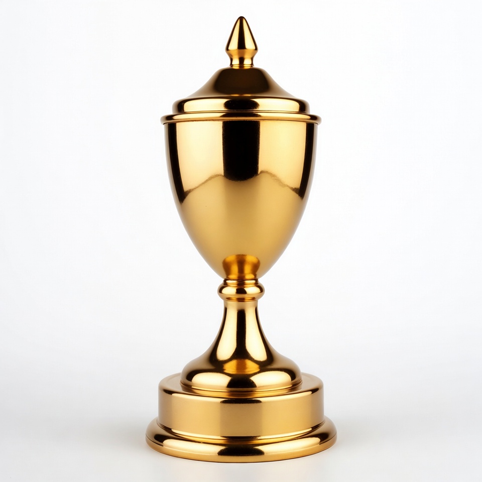 achievement, award, championship, competition prize, cup, first place, gleaming, golden cup, isolated background, metallic, ornate base, pedestal, pointed lid, polished, shiny, sports award, trophy, victory, white background, winner, gold trophy