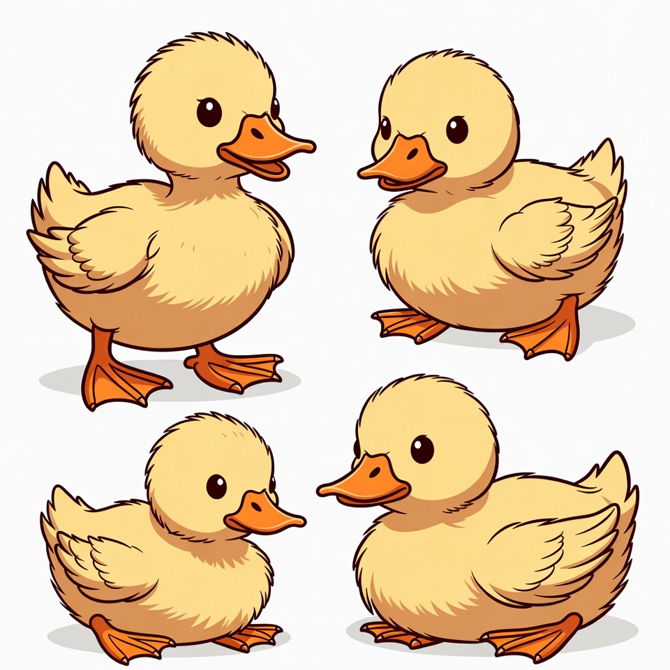 animal clipart, baby ducks, big eyes, cartoon ducks, chibi ducks, clipart, cute ducklings, duck illustration, fluffy ducks, illustration, isolated background, orange beaks, playful ducks, standing ducklings, vector art, webbed feet, yellow ducklings, ducklings