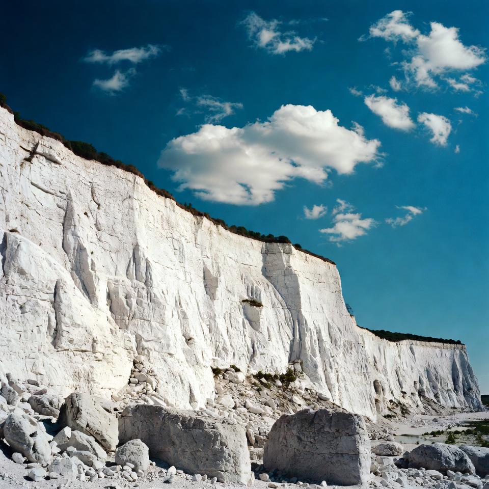 White Chalk Cliffs and Beach Rocks