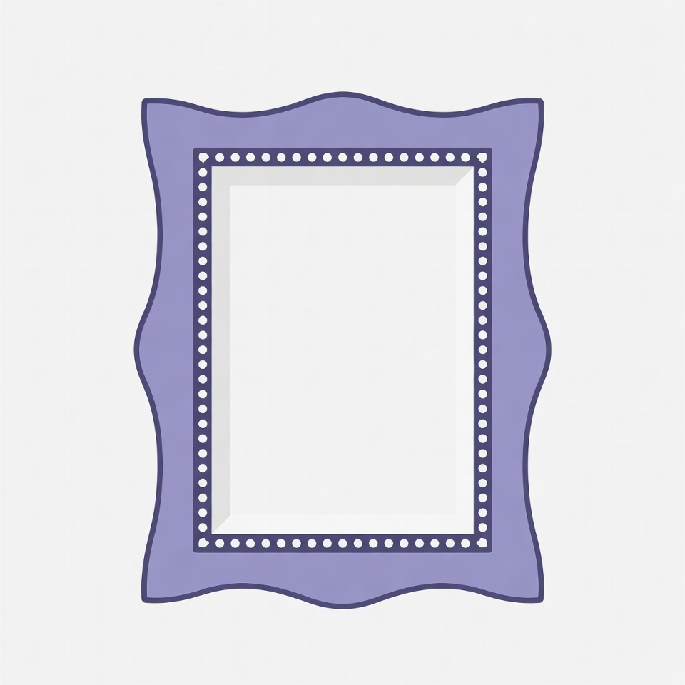 clipart, decorative frame, dots, empty frame, illustration, isolated background, ornate frame, photo frame, purple frame, simple graphic, vector, wavy border, white interior, picture frame