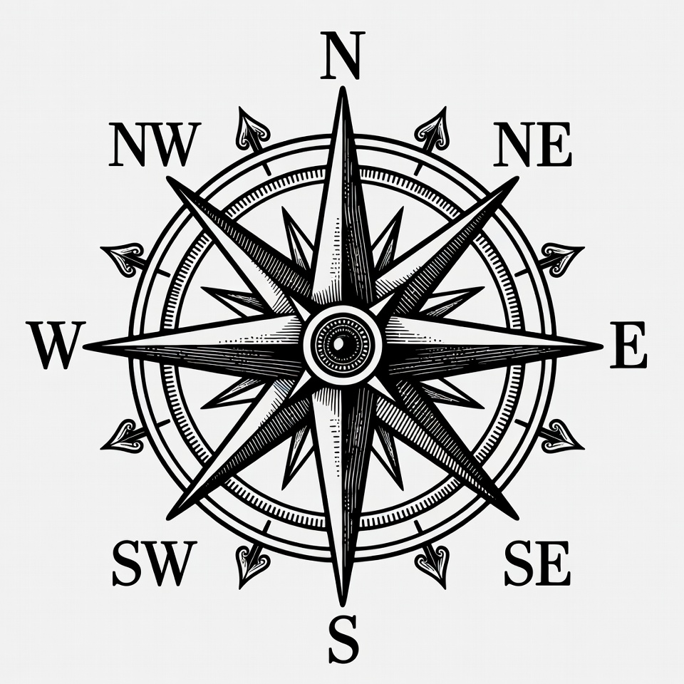 Black and White Compass Rose