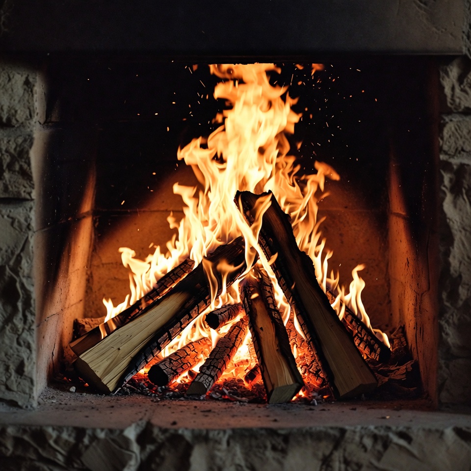 Blazing Fire in Stone Fireplace