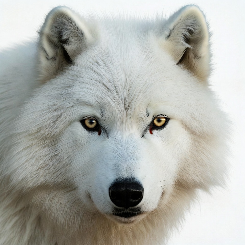 animal, arctic wolf, black nose, canine, close-up, ears, fur, headshot, isolated background, mammal, portrait, predator, stare, wild animal, wildlife, wolf, yellow eyes, white wolf
