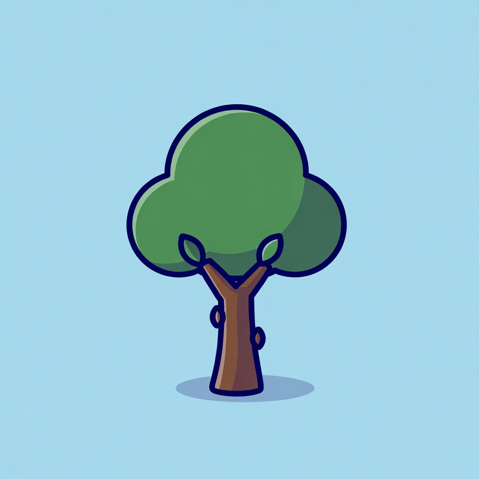 Cartoon Green Tree on Blue Background