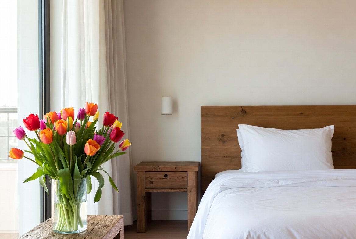 Colorful Tulips on Bedroom Nightstand
