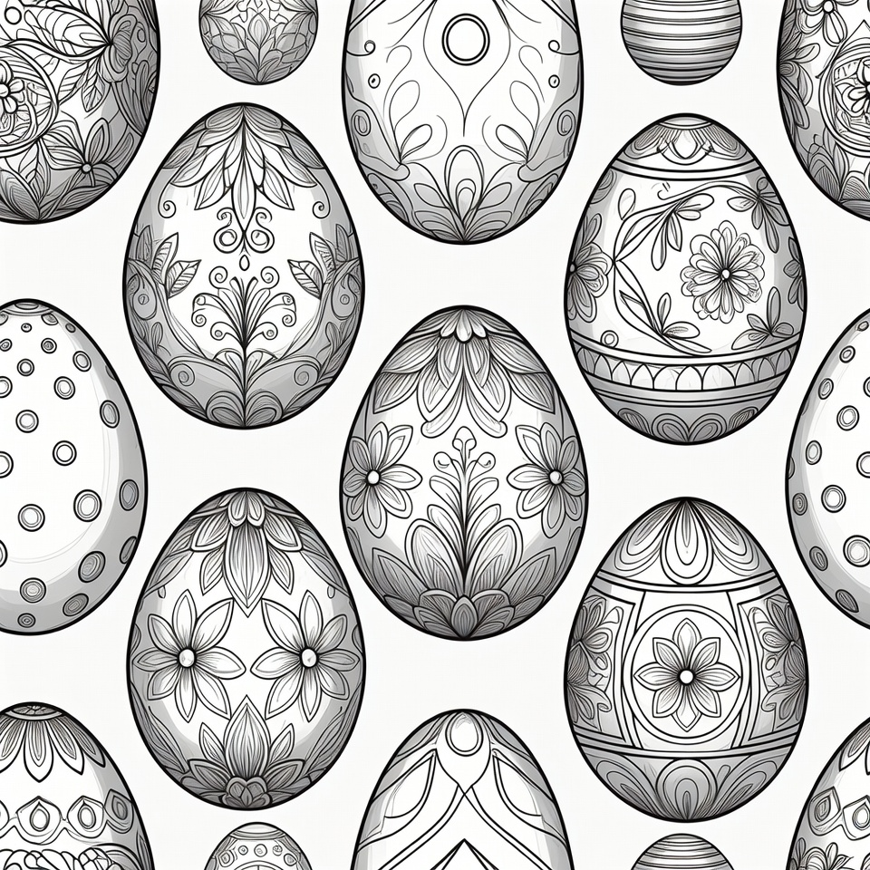 black white, clipart, decorated eggs, dotted eggs, floral eggs, holiday eggs, illustration, isolated background, line art, mandala eggs, ornate eggs, pattern, seamless, spring eggs, striped eggs, Easter eggs