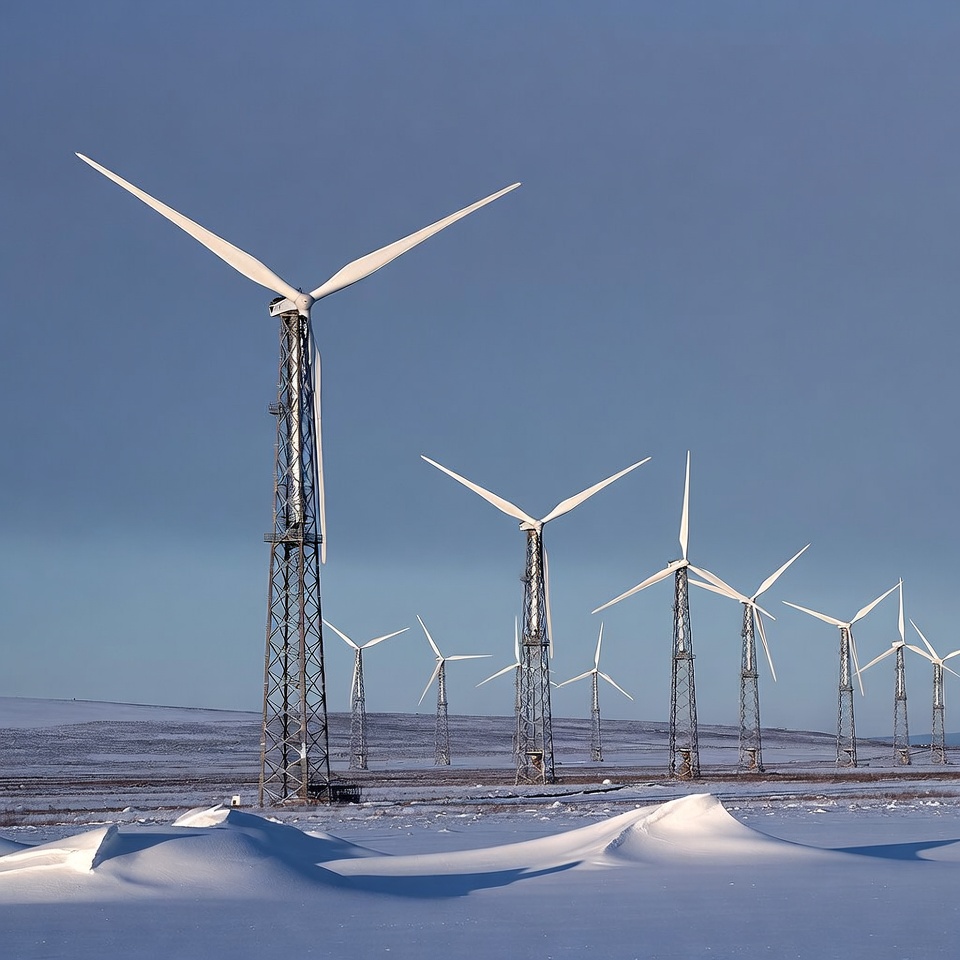 Wind Turbines in Snowy Landscape