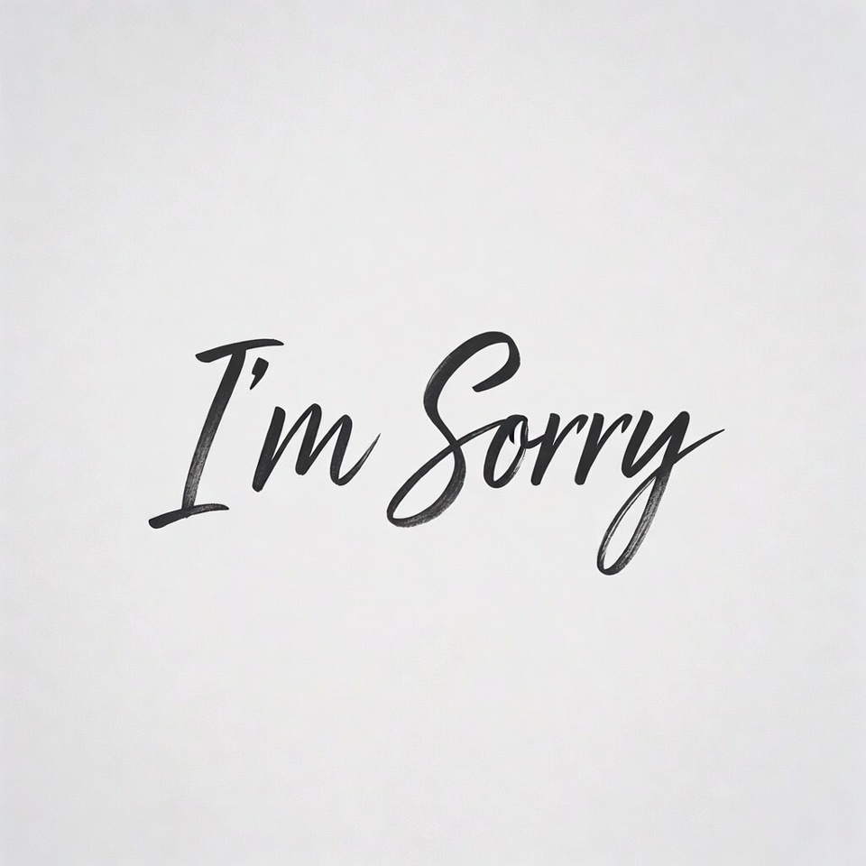 apology, black text, brush script, calligraphy, cursive font, forgiveness, graphic, handwritten, isolated, lettering, quote, simple design, sorry text, text art, white background, I'm sorry