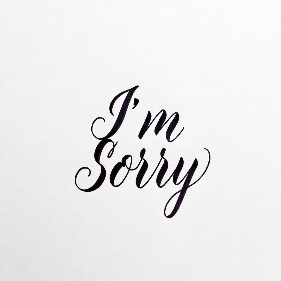 apology, black text, calligraphy, cursive font, elegant writing, handwritten, isolated background, message, quote, script lettering, sorry text, typography, white background, I'm sorry