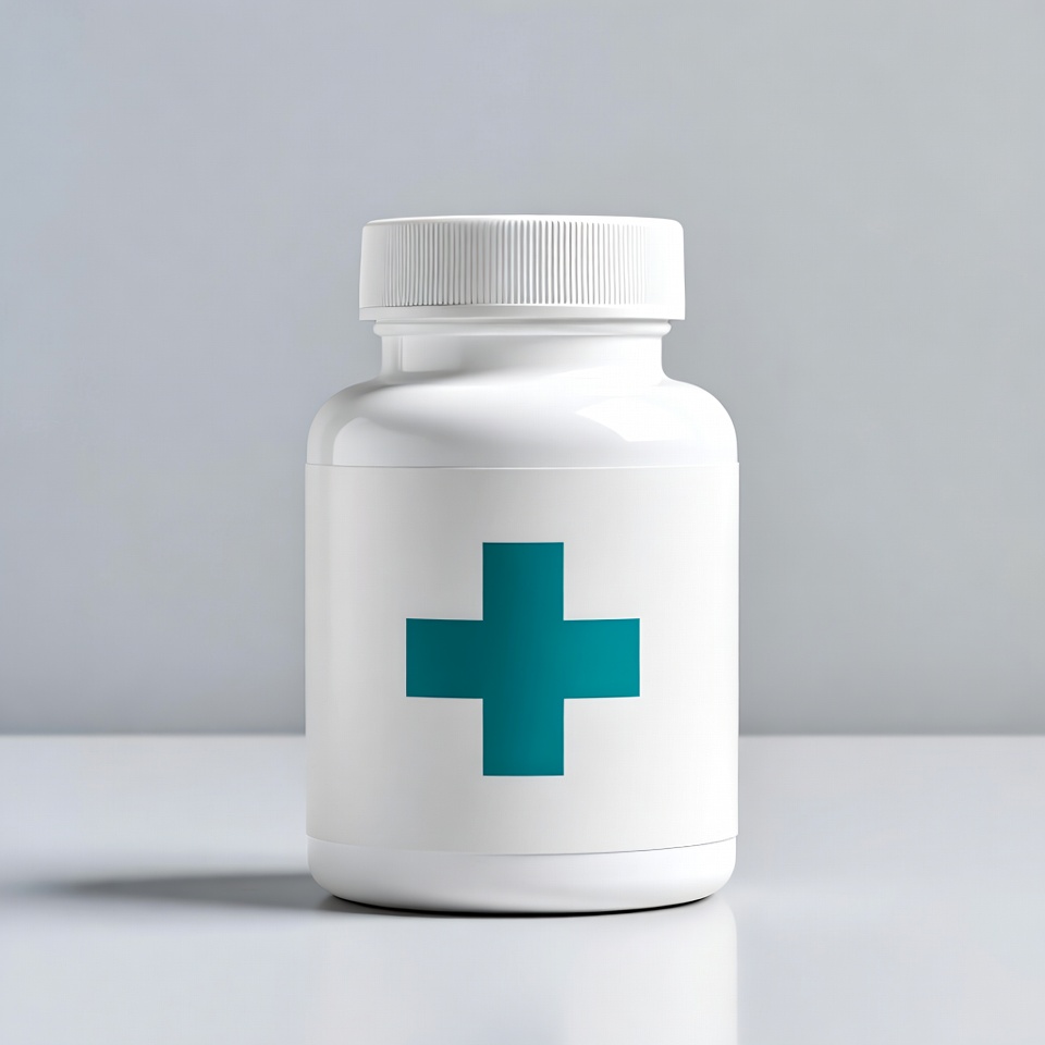 drug container, gray background, health, healthcare, isolated background, medical symbol, medication, pharmacy, pill bottle, plastic bottle, prescription bottle, supplement bottle, teal cross, white bottle, white cap, medicine bottle