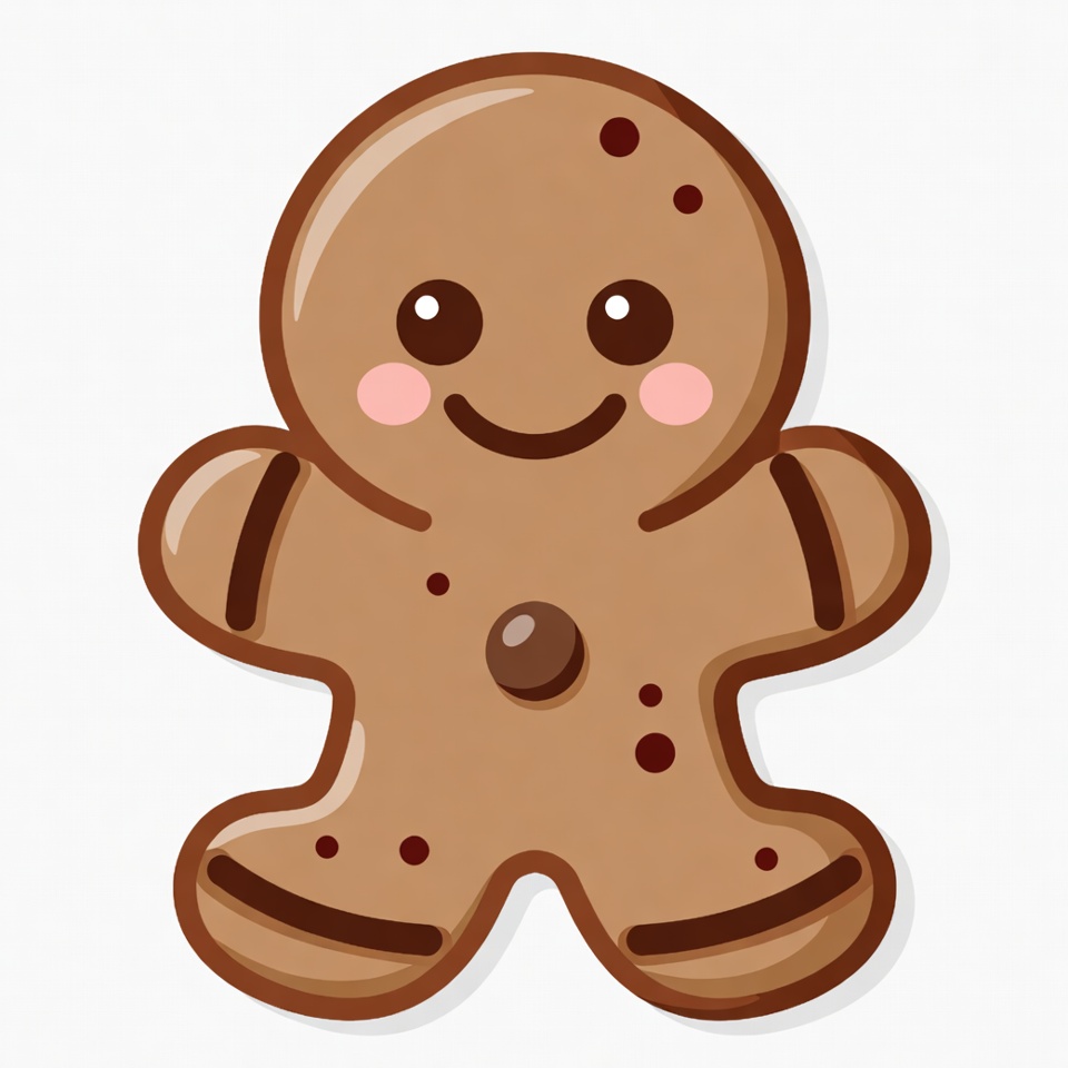 Christmas, arms outstretched, big eyes, blush cheeks, brown, cartoon, chocolate chips, clipart, cookie, cute, festive, gingerbread, happy, holiday, illustration, isolated background, kawaii, smiling, vector, gingerbread man