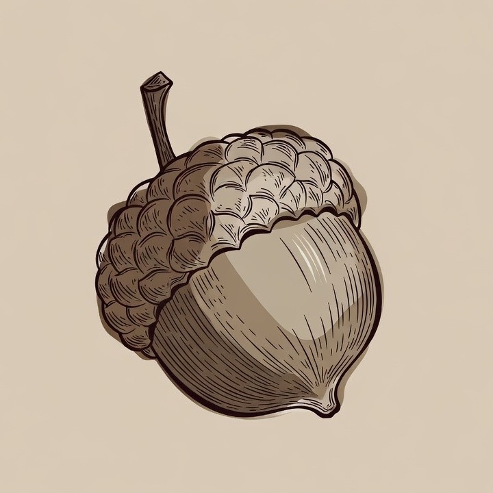 Illustrated Acorn on Beige Background