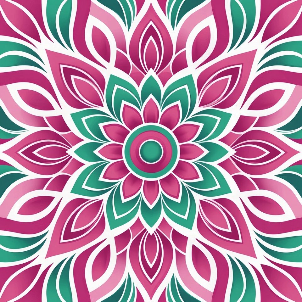 abstract, art, bloom, boho, circular, clipart, decorative, design, detailed, ethnic, floral, flower, graphic, green, illustration, isolated background, motif, ornament, pattern, petals, pink, swirl, symmetrical, vector, vibrant, mandala