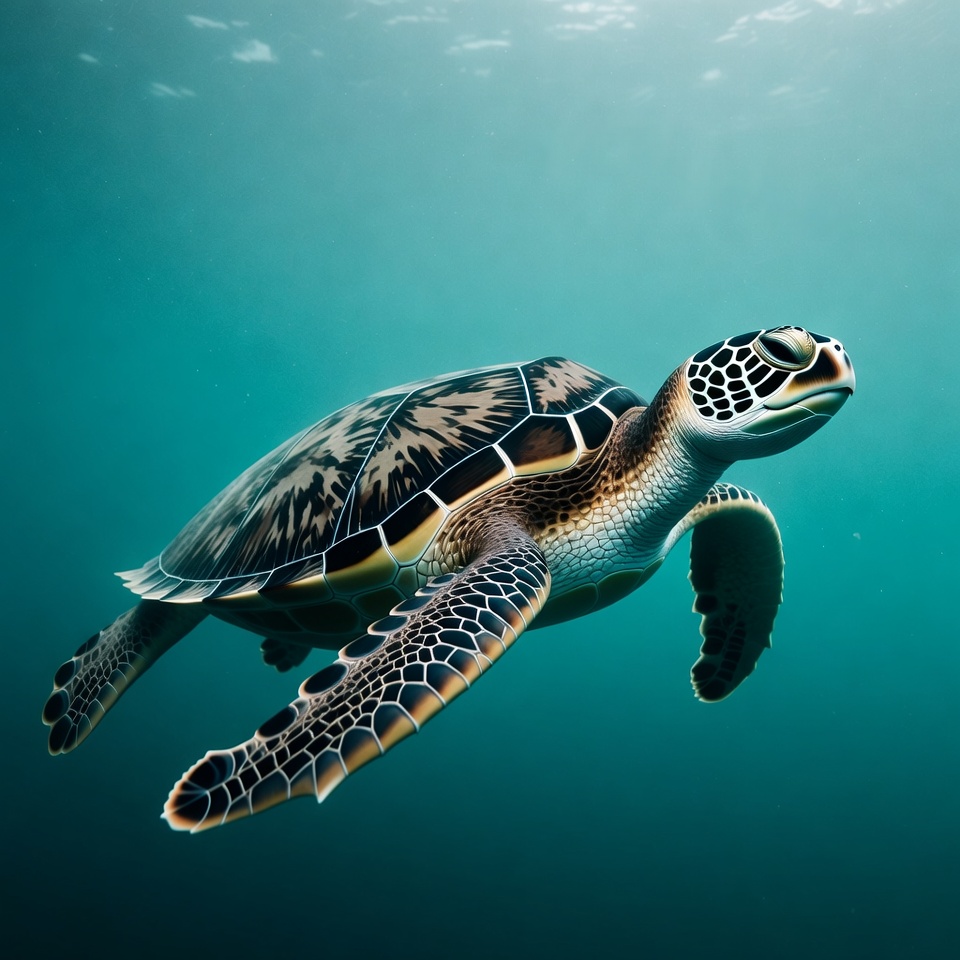 animal, bubbles, flippers, green turtle, isolated background, marine life, ocean, patterned shell, shell, swimming, turquoise water, turtle, underwater, wildlife, sea turtle