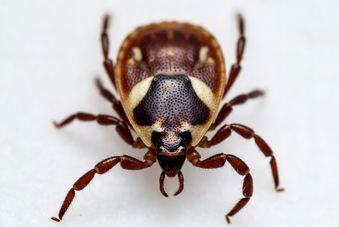 Ixodes scapularis, arachnid, arthropod, black markings, blacklegged tick, brown body, bug, close-up, deer tick, eight legs, insect, isolated background, macro photography, nature, parasite, white background, white scutum, wildlife, tick
