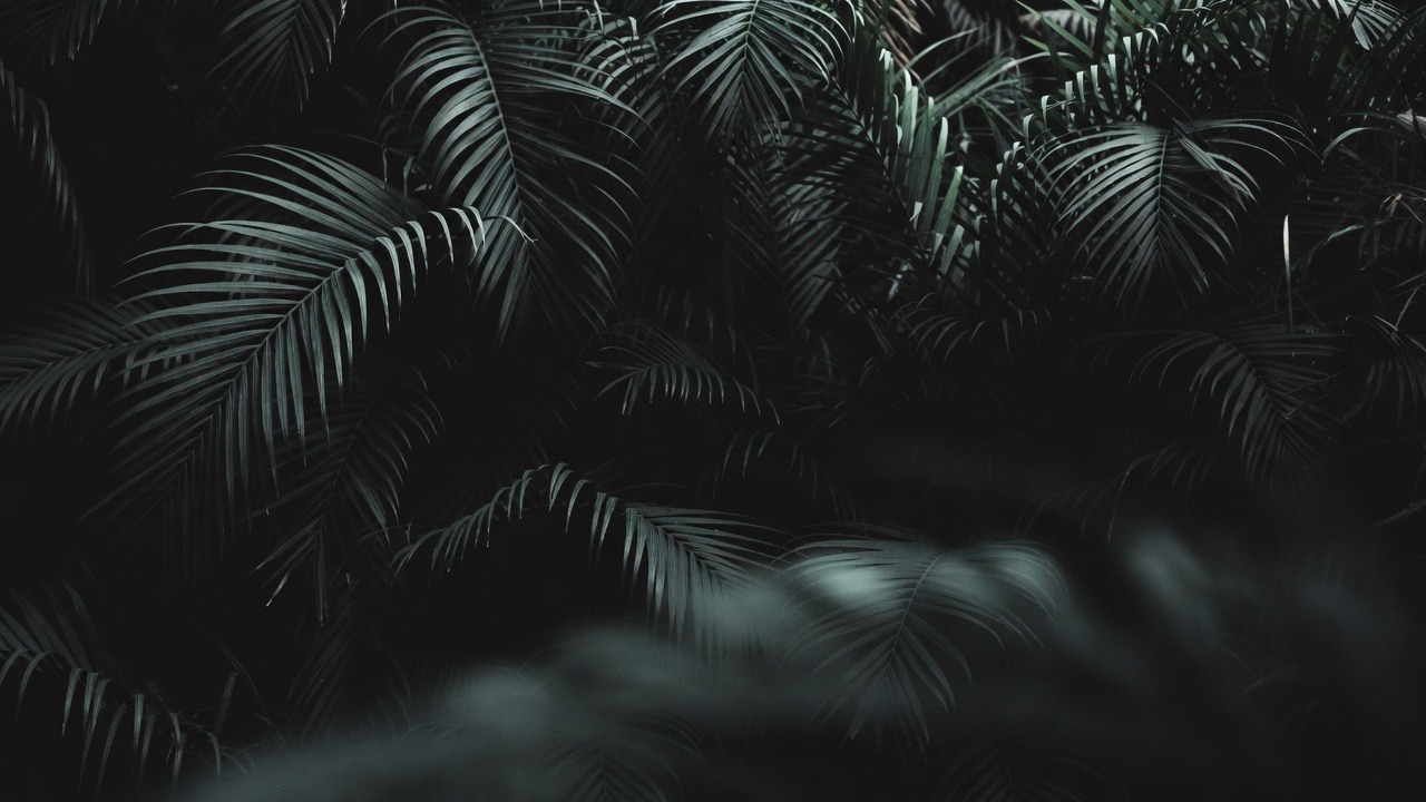 blurred background, botanical, dark green, exotic plants, flora, forest plants, fronds, green fronds, jungle foliage, leaf texture, leaf veins, leaves, lush greenery, nature, palm fronds, plants, rainforest, shadows, soft lighting, tropical leaves, tropical plants, vegetation, palm leaves