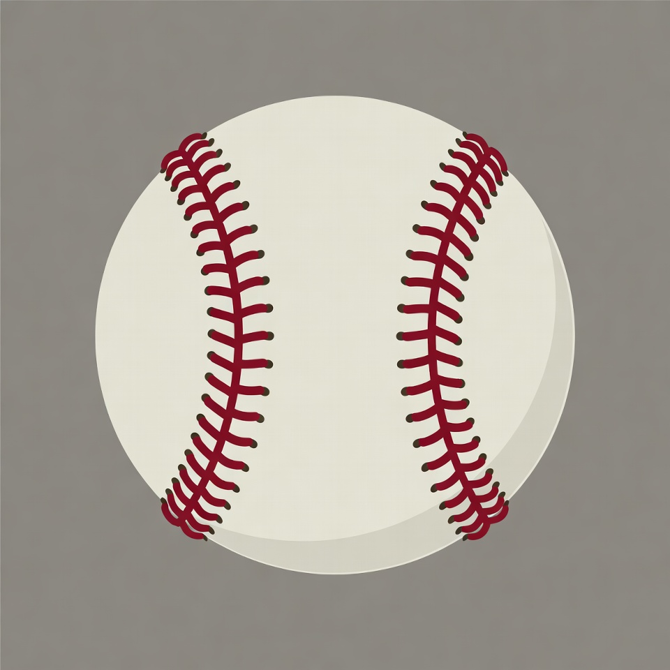 A white baseball with red stitches is centered on a gray background. The seams are prominently visible and curved across the ball's surface. The illustration style is clean and simple.