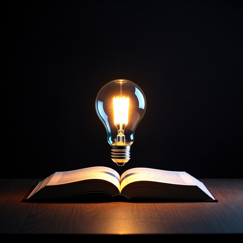 Lightbulb Floating Above Open Book