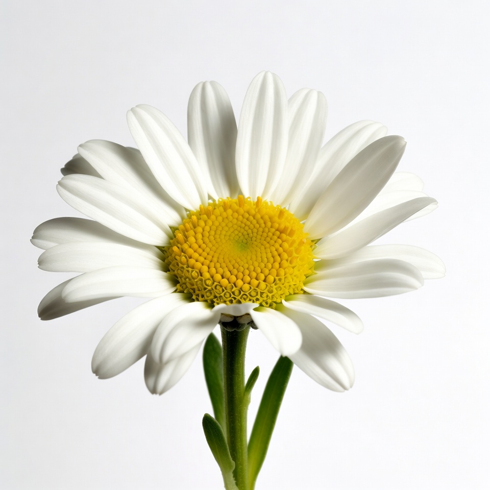 bloom, botany, close-up flower, daisy flower, floral, flower, green stem, isolated background, nature, white background, white daisy, white petals, yellow center, daisy