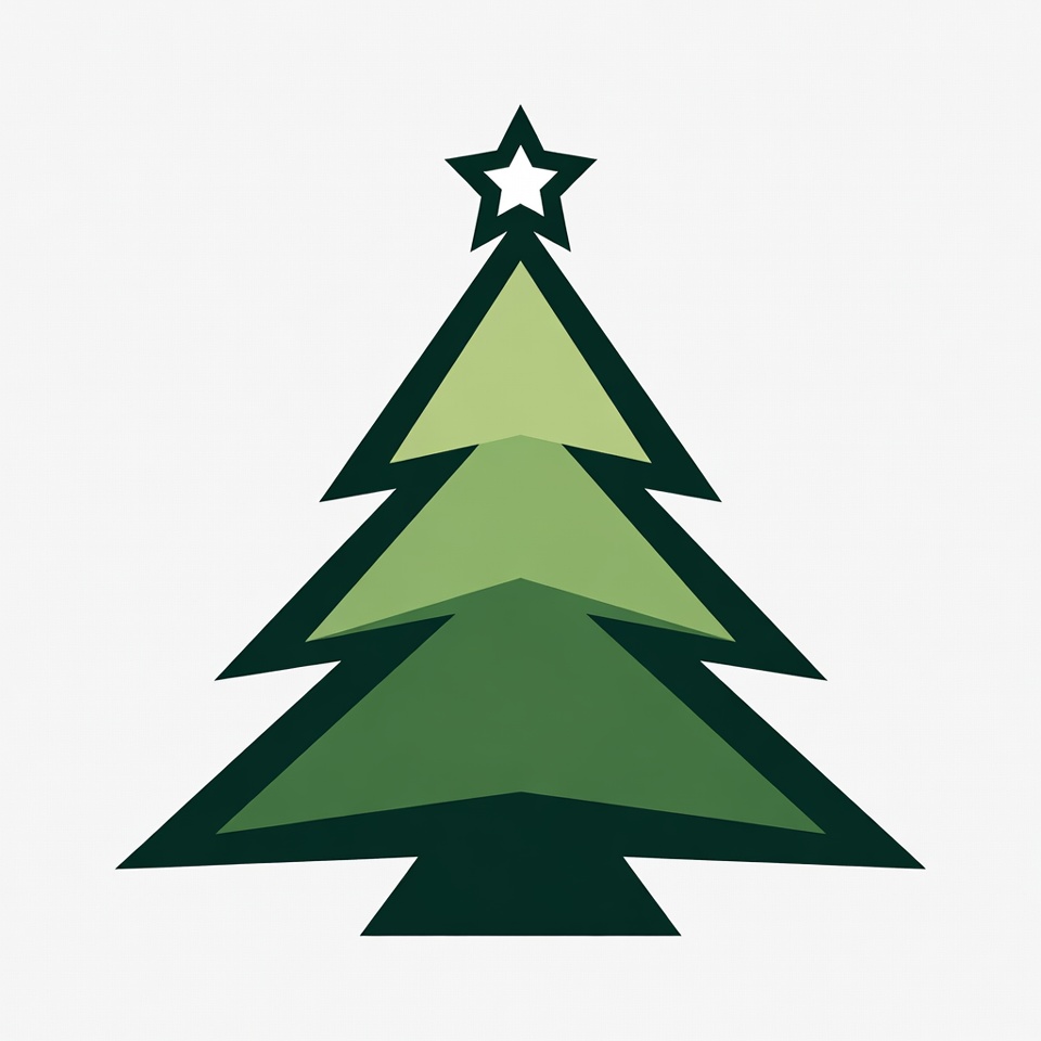 Christmas, clipart, evergreen, festive, geometric tree, green tree, holiday tree, illustration, isolated background, layered tree, pine tree, simple design, star, tree, vector art, white star, Christmas tree