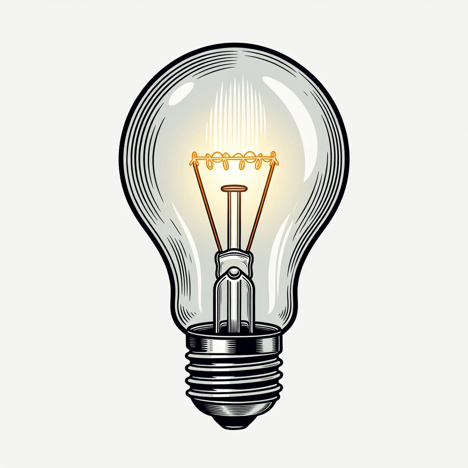 bright, bulb illustration, clipart, drawing, electricity, energy, filament, glass bulb, glowing, glowing bulb, idea, illustration, incandescent bulb, isolated, line art, metal base, sketch, vintage bulb, white background, light bulb