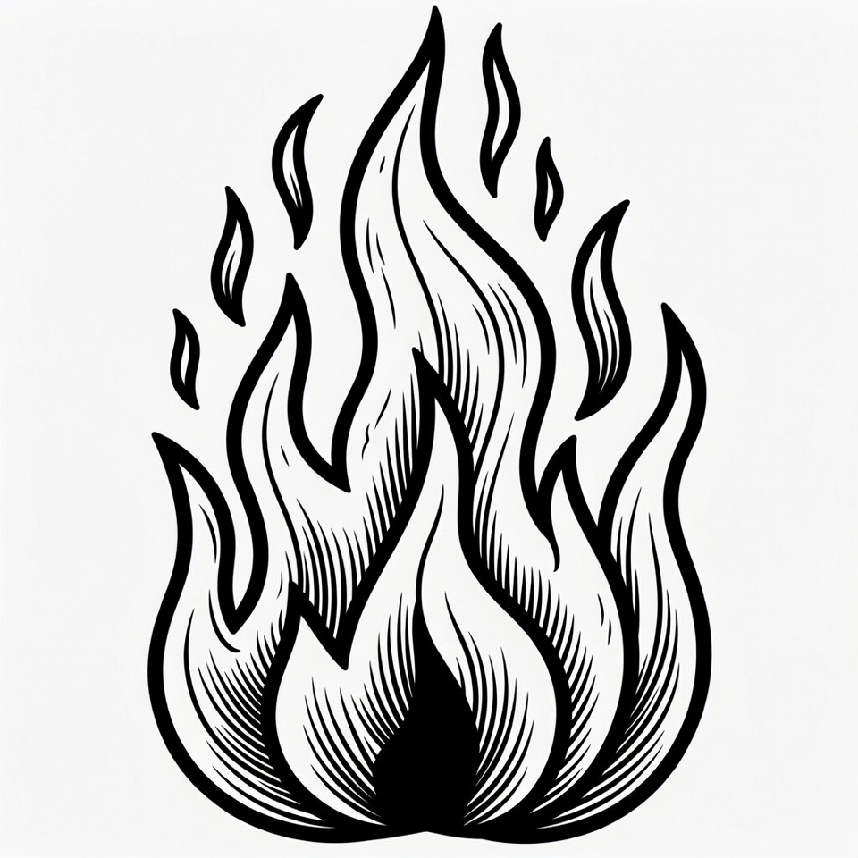black and white, burning, clipart, fiery, fire, flames, graphic, heat, illustration, inferno, isolated background, line art, sketch, vector, flame