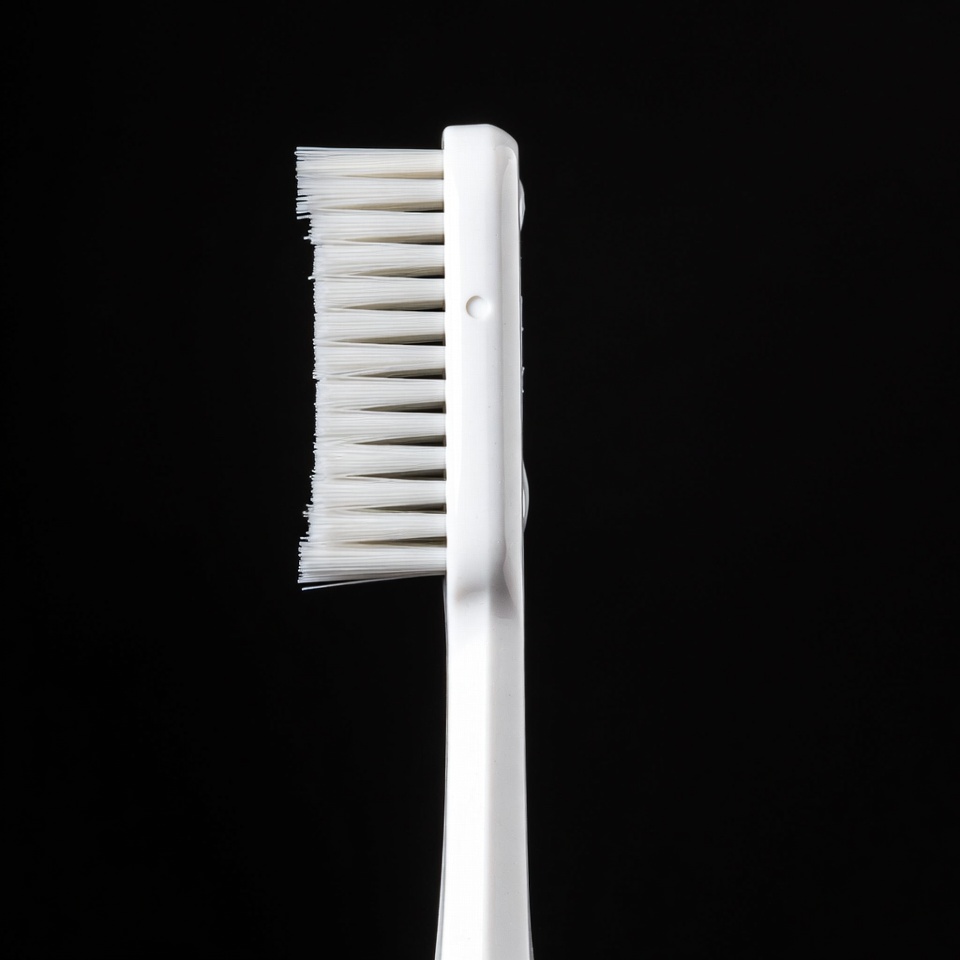 bathroom item, black background, clean toothbrush, closeup, dental care, hygiene product, isolated background, oral hygiene, product photo, soft bristles, teeth cleaning, toothbrush bristles, white handle, white toothbrush, toothbrush