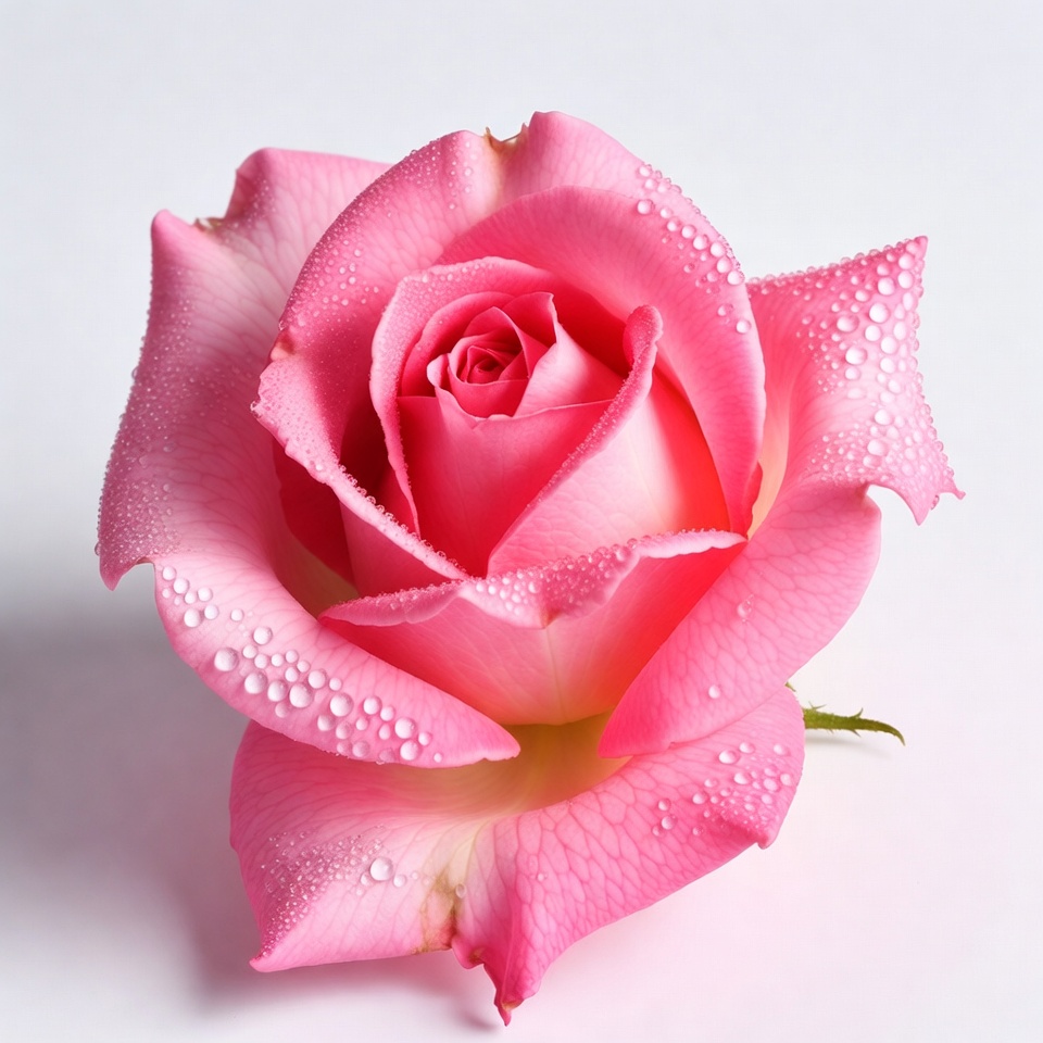 beauty, bloom, closeup, dew drops, dewdrops, elegant, floral, flower, fresh, garden, isolated, macro, nature, petals, romantic, rose, stem, vibrant, water droplets, white background, pink rose