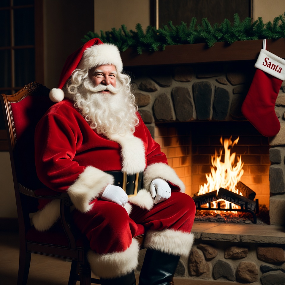 Santa Claus by Fireplace