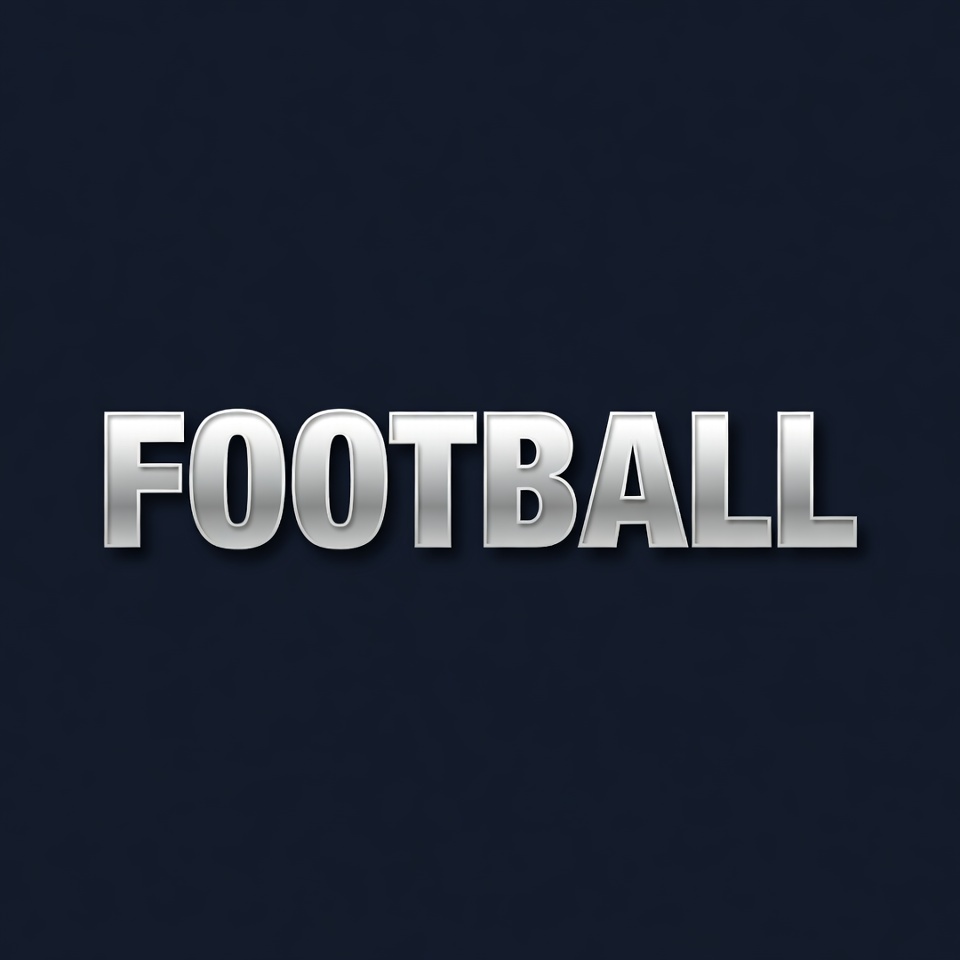 3D, bold letters, chrome effect, dark background, font, glossy, isolated background, metallic, navy background, shiny, silver, sports, text, typography, word, football