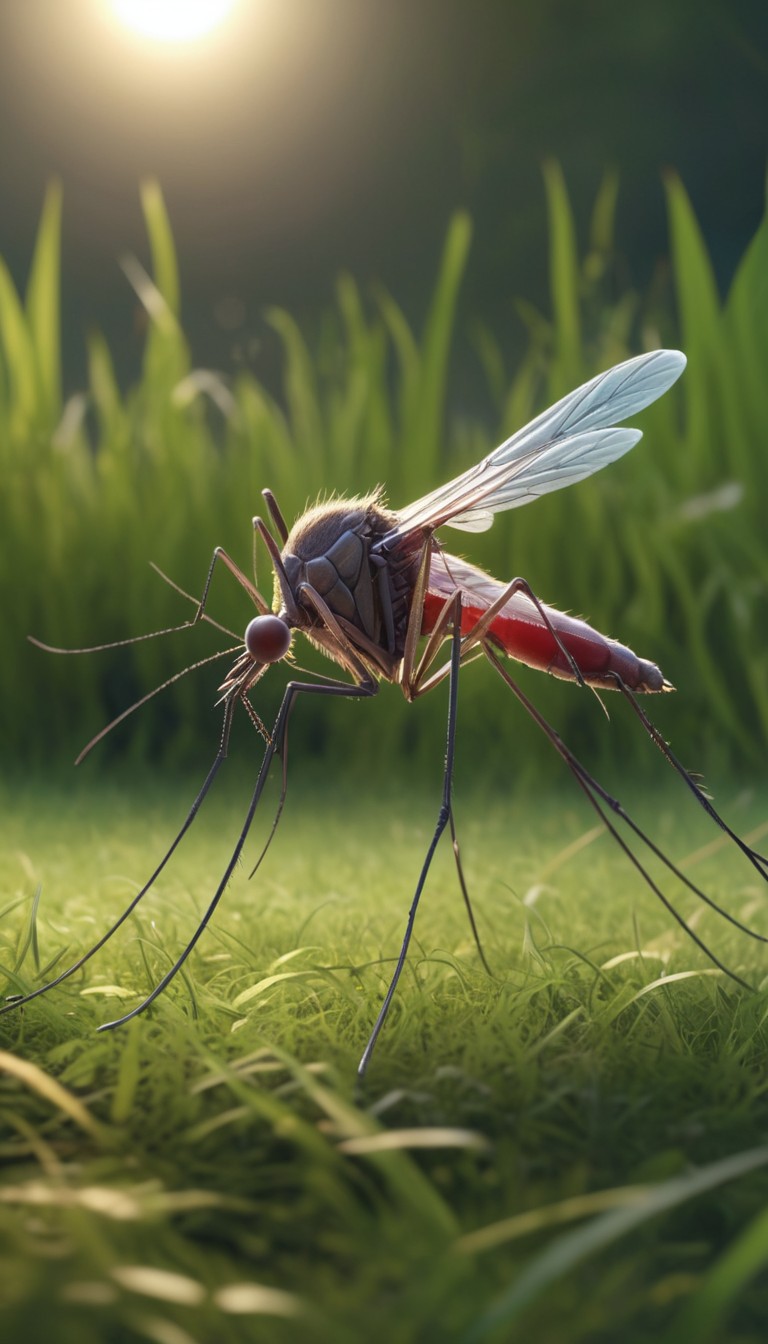 Mosquito on grass in sunlight