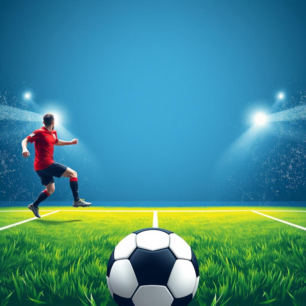 Soccer player kicking ball on field