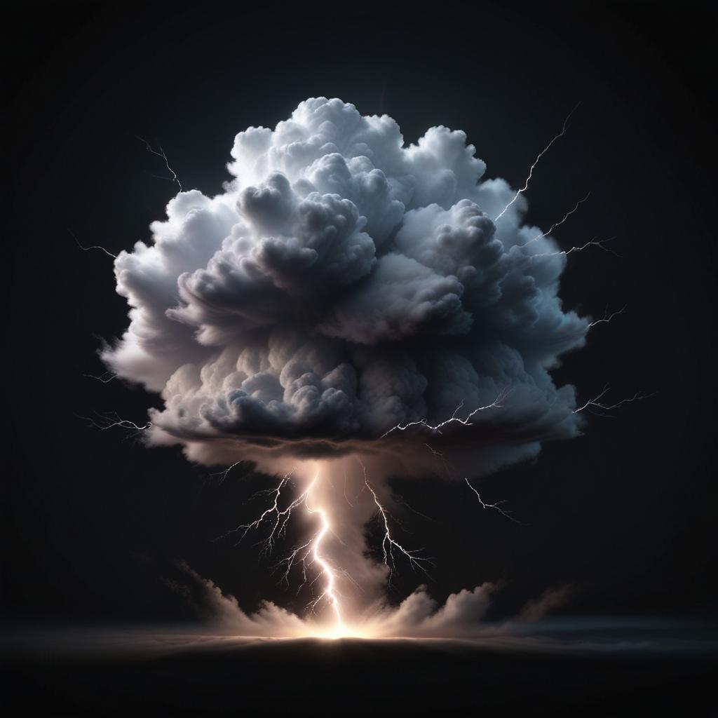 A large, dark storm cloud with lightning bolts striking from the bottom.
