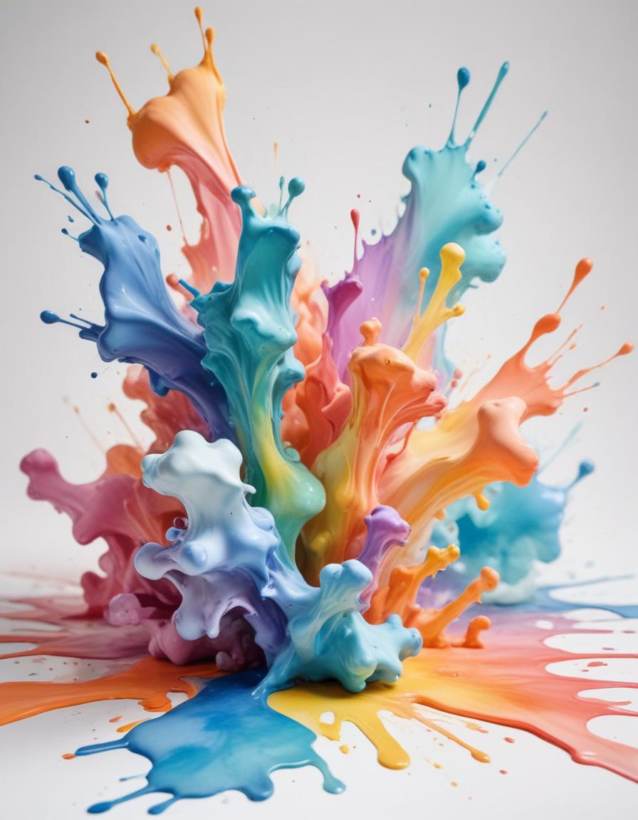 Vibrant splashes of paint in various colors burst creatively, forming an artistic explosion on a white background.